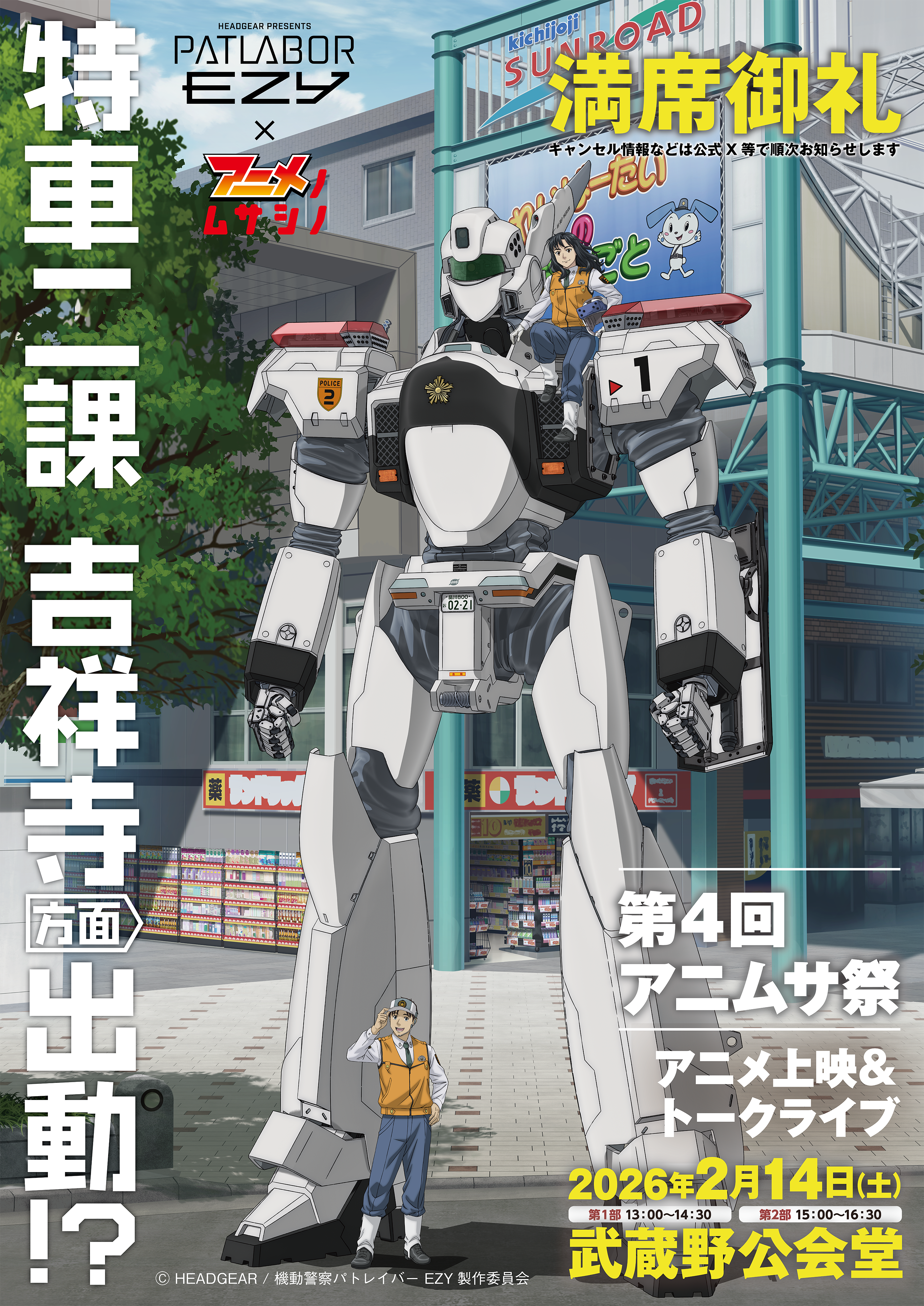 シリーズ待望の新作『機動警察パトレイバーEZY』とコラボイベントとなる「第4回アニムサ祭」。本日より、吉祥寺の3カ所に大型のポップを設置!むー観事務局アニメイト吉祥寺パルコ武蔵野公会堂2026年2月1...