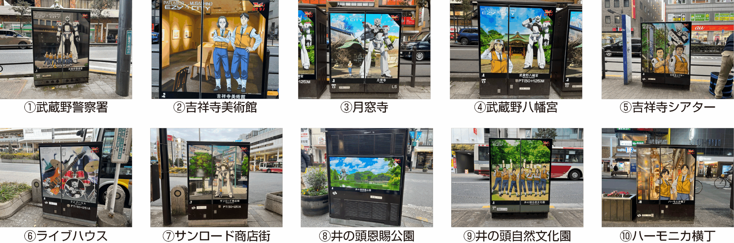 10カ所それぞれに異なる絵柄が展開されていますので、ぜひ吉祥寺北口エリアを巡ってみてください。