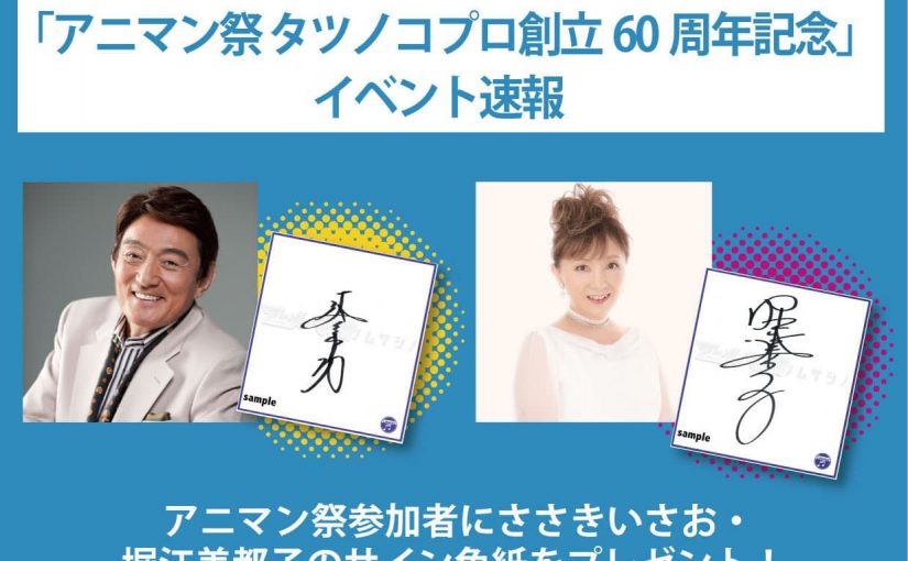 アニマン祭参加特典の続報です。2023年1月27日に開催される「アニマン祭タツノコプロ創立60周年記念」イベントでミニライブを行う、ささきいさおさん、堀江美都子さんのサイン色紙を、各10枚、計20枚プ...